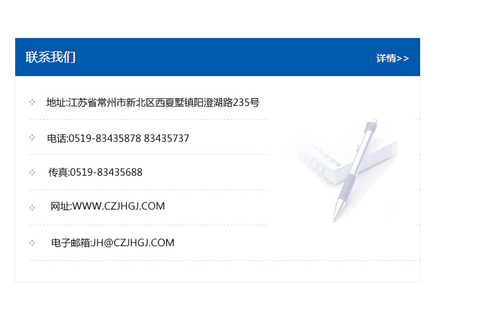 傳真:0519-83435688    郵編:213135    網址:WWW.czjhgj_com.qlqsmf.com    電子郵箱:JH@czjhgj_com.qlqsmf.com